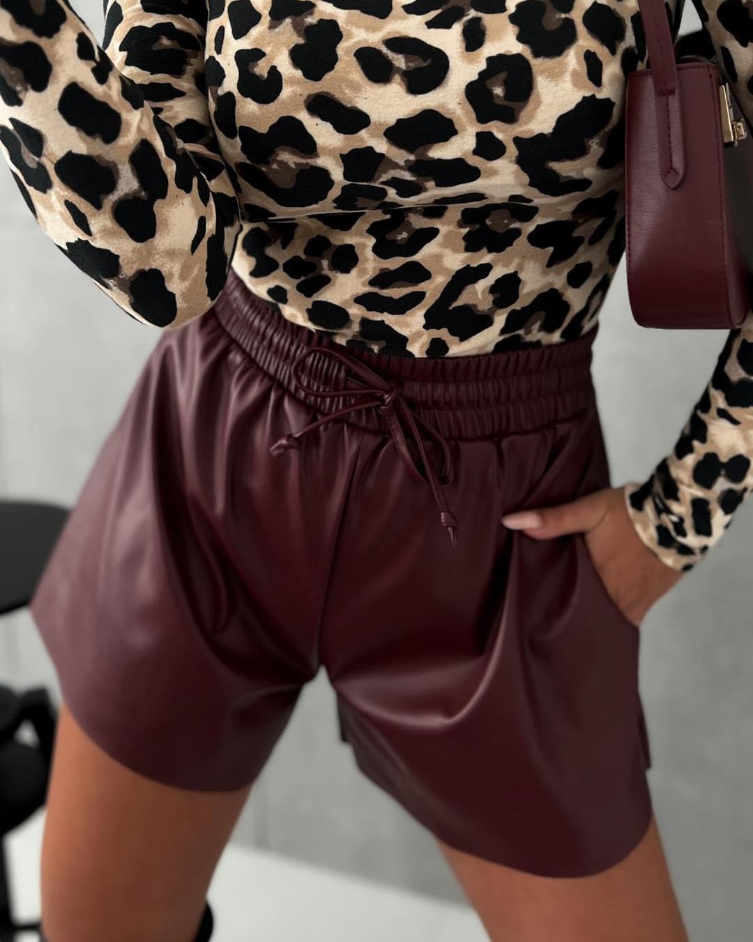 Burgundy Shorts Eco Leather